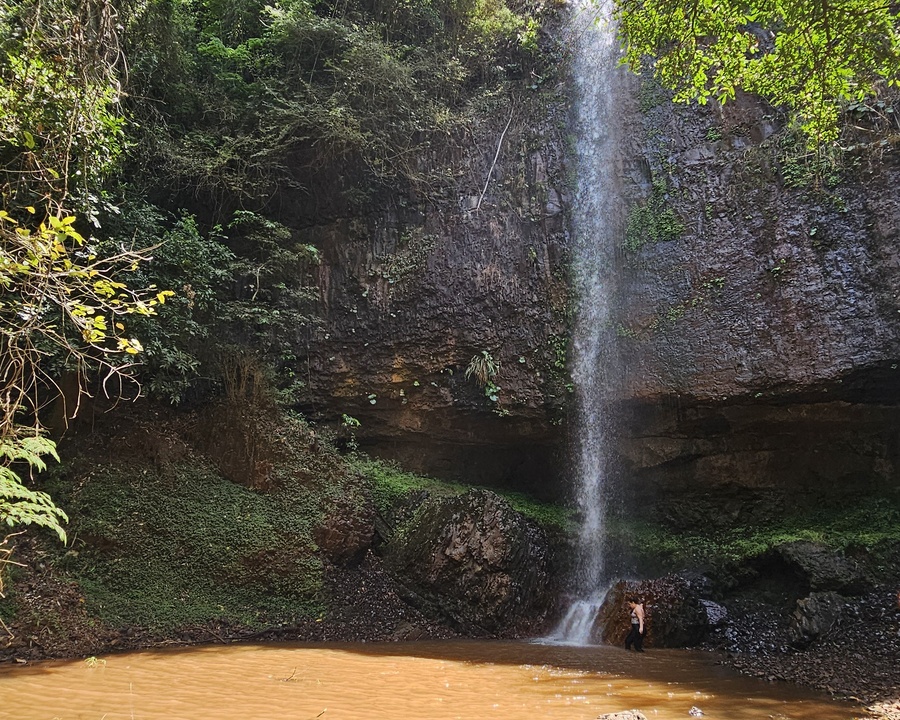 Para chegar a essa cachoeira percorreremos uma trilha fácil e tranquila com baixa altimetria, e o resultado final é a vista frontal a essa majestosa e linda queda d’água.
