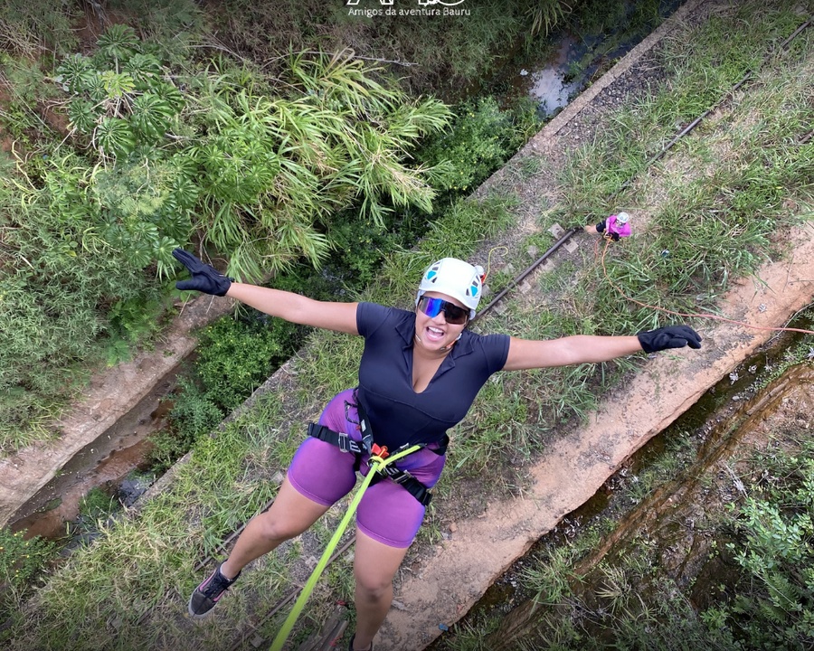 Descida de Rapel, Equipamentos de segurança, Monitores, Especialista em primeiros socorros, Suporte nas atividades, Seguro Aventura.