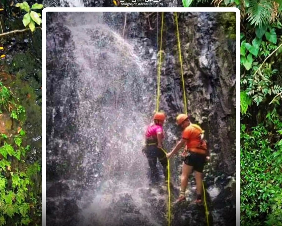Nessa aventura percorreremos uma pequena trilha de aproximadamente um quilômetro até chegarmos a parte alta da Cachoeira Ibaté, onde iremos realizar a modalidade do rapel esportivo com descidas positivas (com apoio nos pés).