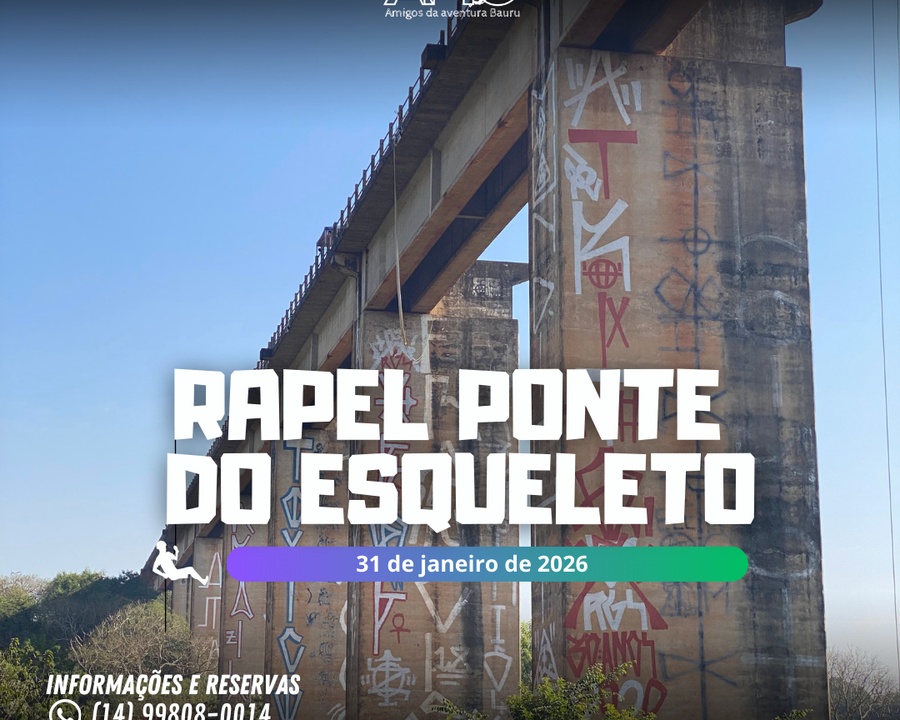 Com aproximadamente 30 metros de altura a ponte do Esqueleto é um símbolo tradicional dos rapeleiros do estado de São Paulo, localizada no município de Limeira, essa imponente ponte proporciona adrenalina pura de um rapel 100% negativo, para você se superar e curtir a cada segundo!